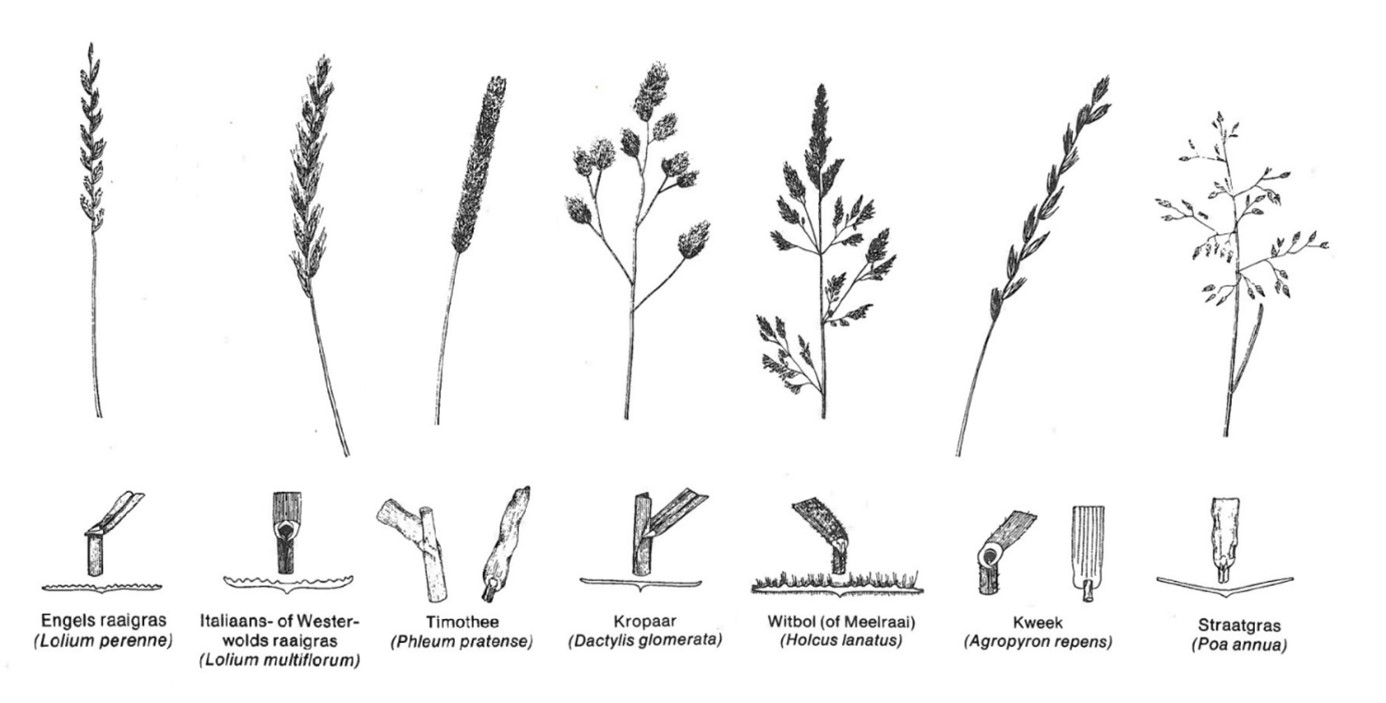 Een bijkomend voordeel van bloei, dat het hét moment is om het grasland kritisch onder de loep te nemen en het grassenbestand te beoordelen. Tijdens de eerste snede lijken veel grassen erg op elkaar, maar zodra ze bloeien, worden de verschillen tussen goede en minder wenselijke soorten beter zichtbaar. In het Handboek Melkveehouderij zijn de meest voorkomende goede, maar ook onwenselijke grassoorten met hun bloeiwijze geïllustreerd en toegelicht.