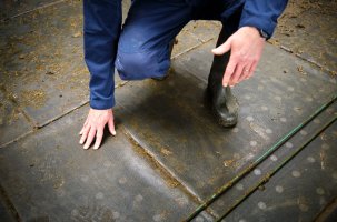 Filterende tegelvloer geeft goede scheiding van mest en urine in de melkveestal