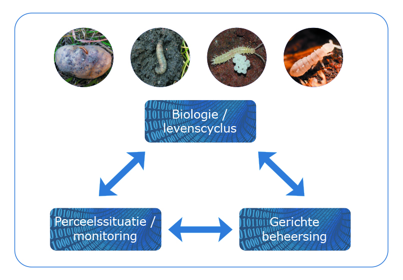 Voor het tot stand brengen van toekomstbestendige plaagbeheersing is informatie van drie hoofdcomponenten nodig. In dit project wordt daarom gewerkt aan: