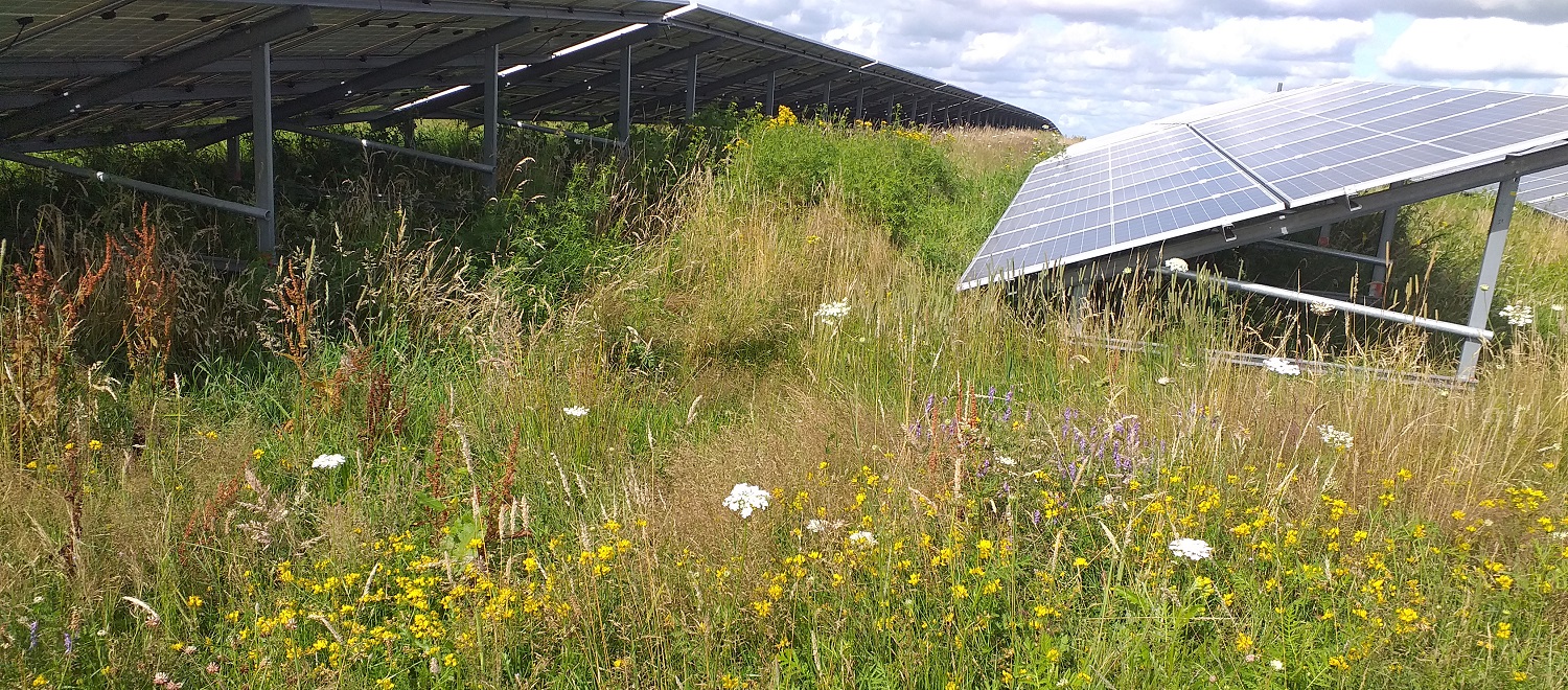 Drie promovendi van de WUR onderzoeken de natuurwaarde in 20 bestaande zonneparken, steeds in vergelijking met intensief en extensief beheerde graslanden in de directe omgeving: